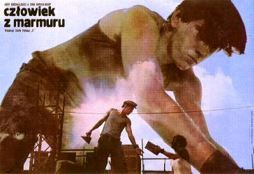 Wystrojona w ubranie z Pewexu córka zawiadowcy stacji, kończąca właśnie wydział reżyserii, jeździ po gierkowskiej Polsce, żeby zrobić film o dawnym przodowniku pracy. Przemierza szerokie arterie Warszawy, lata helikopterem nad Hutą Katowice, zagląda do nocnego klubu w podziemiach Pałacu Kultury i willi reżysera, który wraca właśnie z nagrodą zdobytą na międzynarodowym festiwalu filmowym, a w tle pojawiają się przebitki z lat czterdziestych i pięćdziesiątych i historia młodego robotnika, który z entuzjazmem budował Nową Hutę i któremu ktoś podrzucił gorącą cegłę. Nie wiadomo kto ani po co. Ani słowa o UB, o torturowaniu ludzi o wieszaniu bohaterów. Tak oto 25 lutego 1977 wyglądała premiera „Człowieka z marmuru” Andrzeja Wajdy. Arcydzieło?